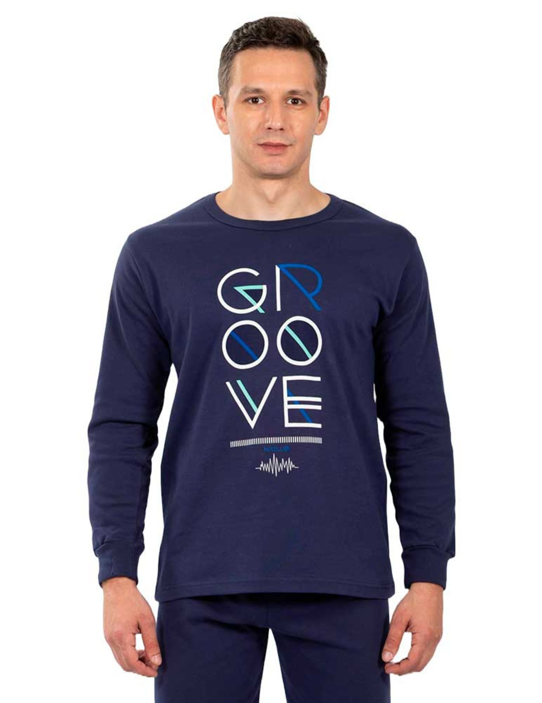 - Ανδρική πυτζάμα Nina Club με μοντέρνο print “GROOVE” στο στήθος