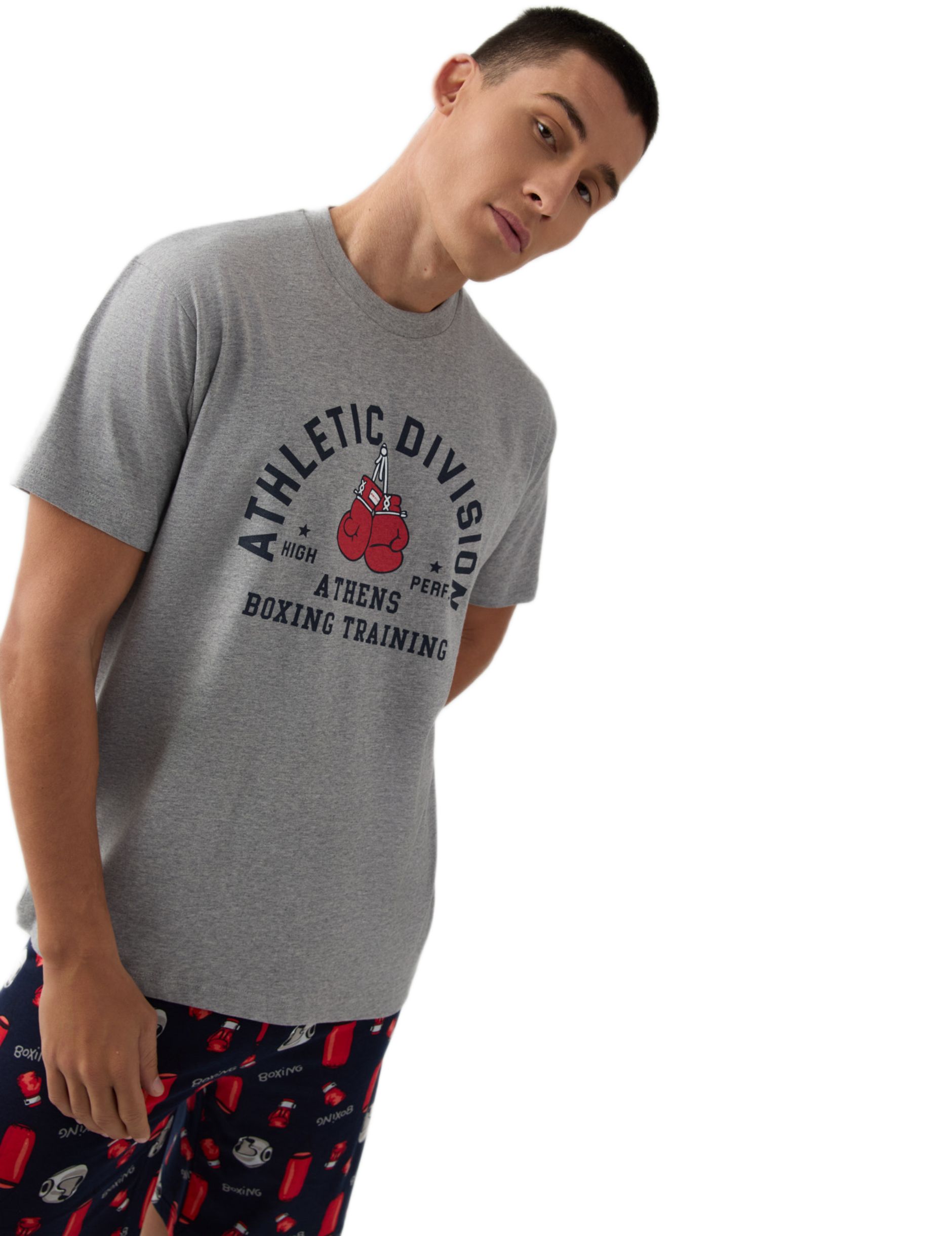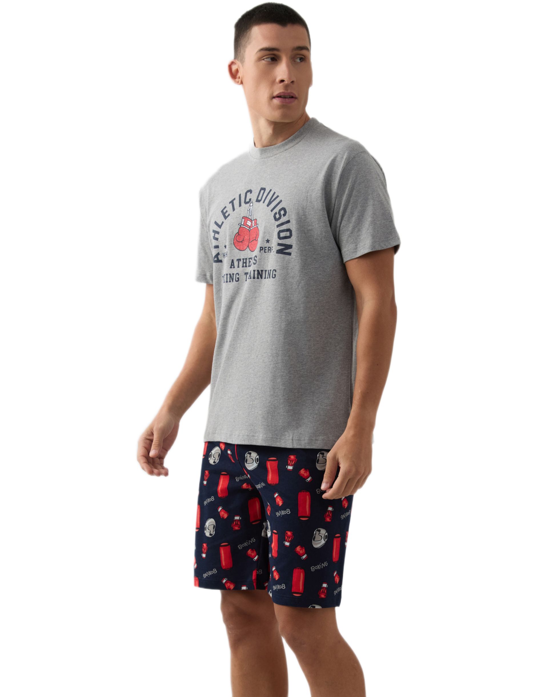 Αναβαθμίστε τη χαλάρωσή σας με αυτό το ανδρικό καλοκαιρινό σετ πυτζάμας Minerva. Κατασκευασμένο από 100% εξαιρετικής ποιότητας βαμβάκι, προσφέρει απαλή αίσθηση και φυσική διαπνοή. Αποτελείται από γκρι μελανζέ κοντομάνικη μπλούζα με αθλητικό vintage τύπωμα και αντιθετικό μπλε μαρέν σορτς με διασκεδαστικό μοτίβο μποξ. Ένα αυθεντικό ελληνικό προϊόν που συνδυάζει στυλ και άνεση για το σπίτι.