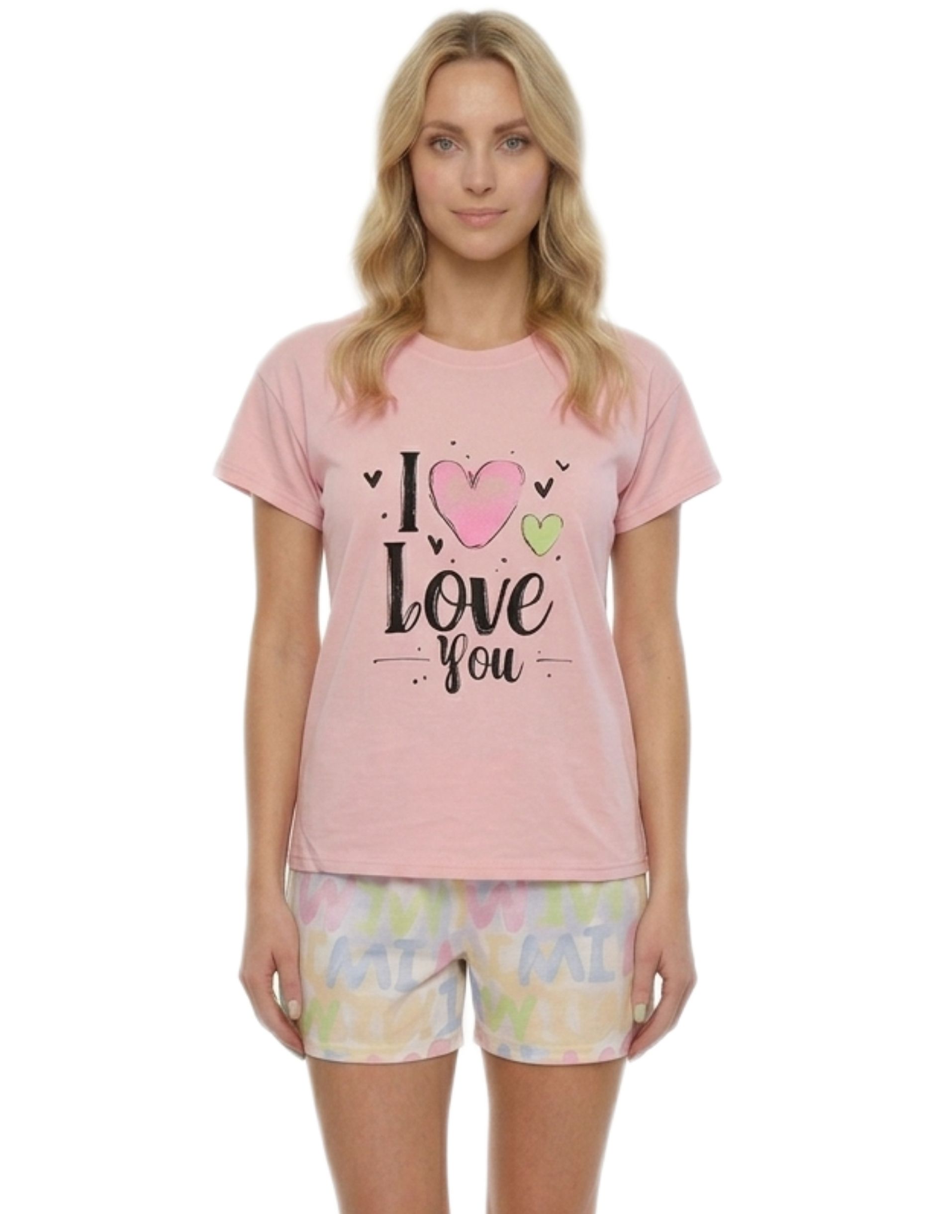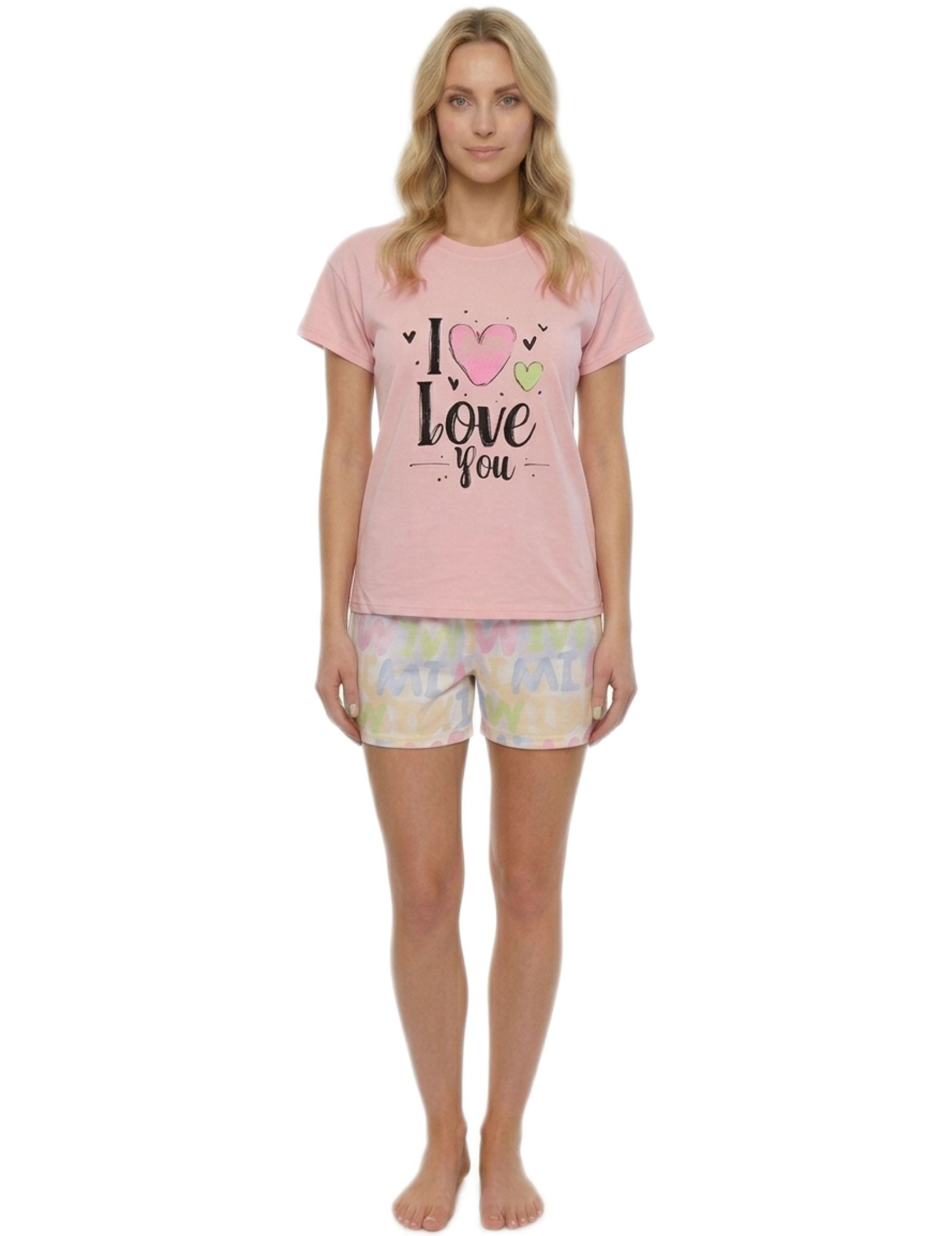 Γυναικείες Καλοκαιρινές Πυτζάμες Caress “I Love You” Ροζ M446