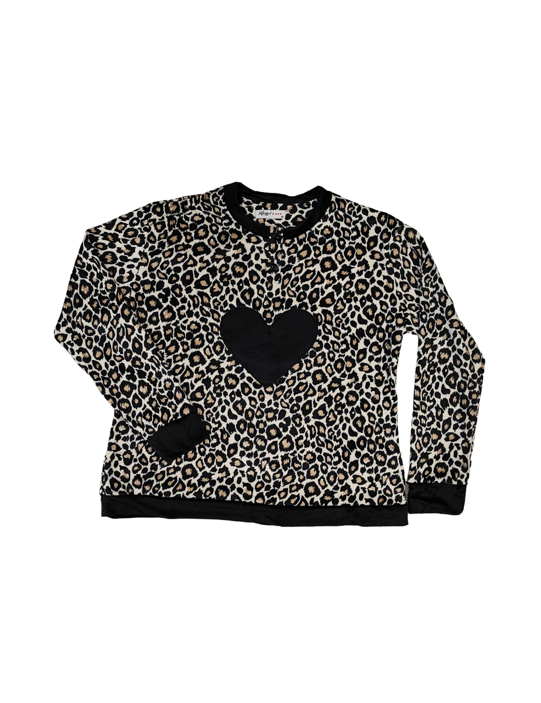 • Μπλούζα με λεοπάρ μοτίβο, μαύρη καρδιά και λεπτομέρειες στις άκρες